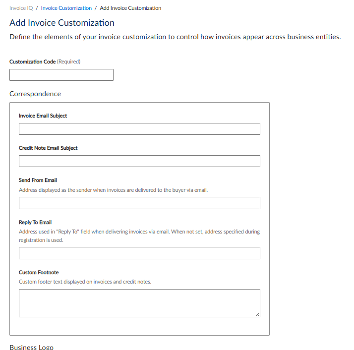 To add a new customization, click Add Invoice Customization. The following UI is displayed:
