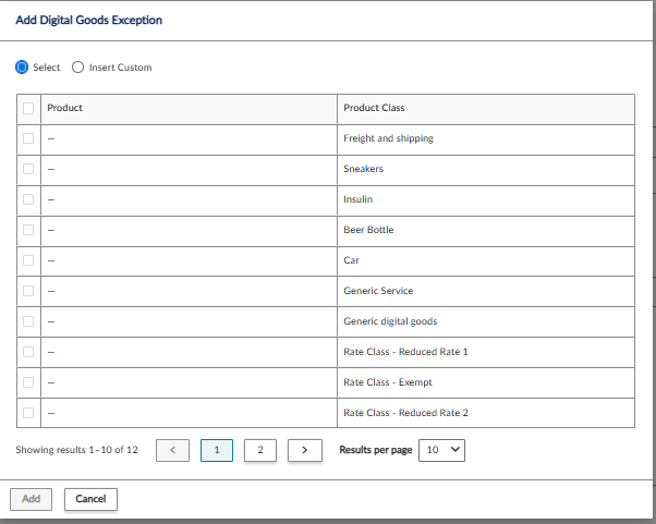 You can create and add an exception for either digital or physical goods.